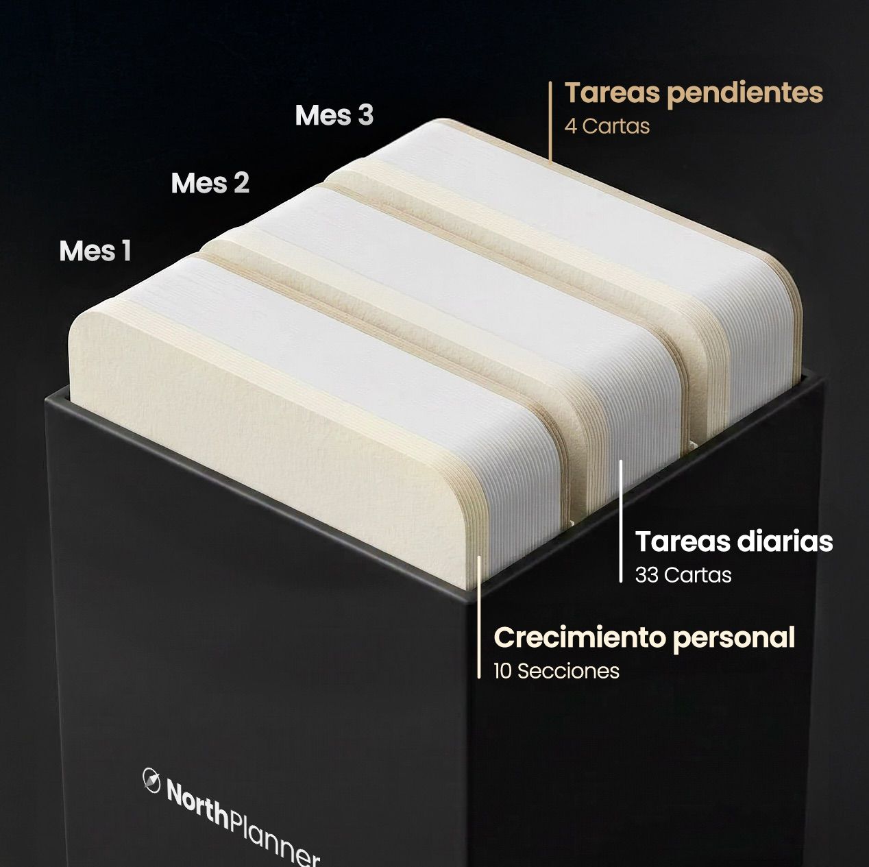 Al abrir tu caja verás tarjetas de tres colores distintos.